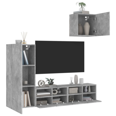 Teljes 4 darab betonszürke szerelt fa fali TV-bútor termékleírás