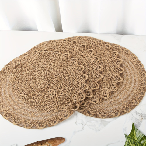 1 kép 4 darabos Elegáns Juta Szövésű Asztali Alátétek Horgolt Szegéllyel