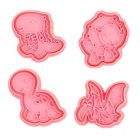 1 kép 4 darabos műanyag süteménykiszúró és nyomda – Vicces dinoszauruszok