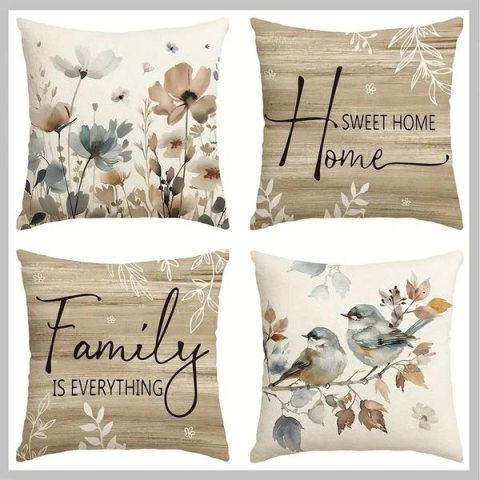 4 darabos őszi, kínai stílusú díszpárnahuzat szett WG352109 Ez a négy darabból álló díszpárnahuzat készlet kiváló választás az otthon őszi hangulatának megteremtéséhez. A természet ihlette minták – virágok, madarak és inspiráló feliratok – meleg, barátságos hangulatot visznek a nappaliba, hálószobába vagy pihenősarokba.A huzatok lenkeverék anyagból készültek, amely egyszerre tartós és kellemes tapintású. A cipzáras kialakítás megkönnyíti a fel-