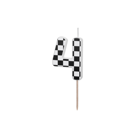 4-es számú születésnapi gyertya kockás zászló mintával, mérete kb. 5,5 cm, keverjük össze