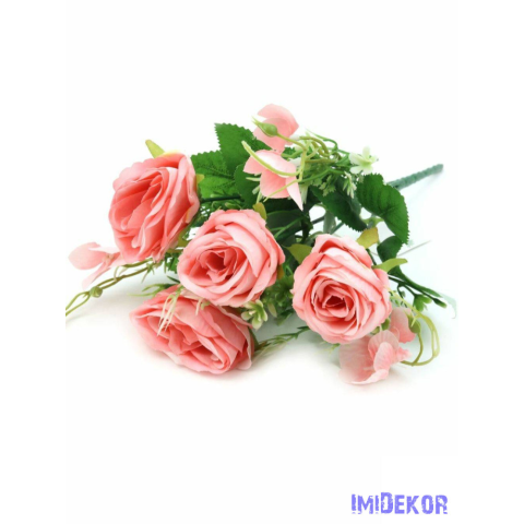 4 fejes rózsa csokor díszítőkkel 32 cm - Rózsaszín dekoráció 1 kép