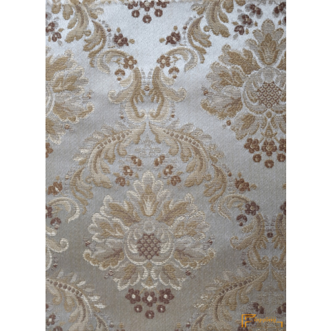 ◤Kategória: Bútorszövet. Kárpit anyag ◤Minta: Adrianna 2 ◤Szín: Bézs-arany-barna ◤Szélessége: 280 cm 1méter=1kg ◤Anyagösszetétel: 50% Poliészter 50% viszkóz ◤Raportja: vízsz. 17,50cm függ. 22cm A megjelölt ár 1 folyóméterre vonatkozik! Bútorszövet, sötét