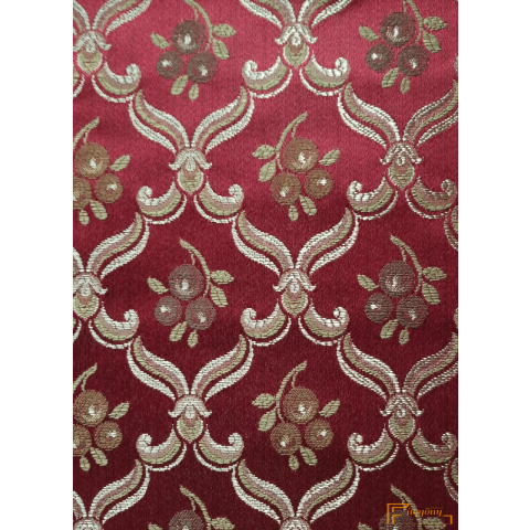 ◤Kategória: Bútorszövet. Kárpit anyag ◤Minta: Adrianna 6 ◤Szín: Bordó-arany ◤Szélessége: 280 cm 1méter=1kg ◤Anyagösszetétel: 50% Poliészter 50% viszkóz ◤Raportja: vízsz. 8,75cm függ. 9,80cm A megjelölt ár 1 folyóméterre vonatkozik! Bútorszövet, sötétítő
