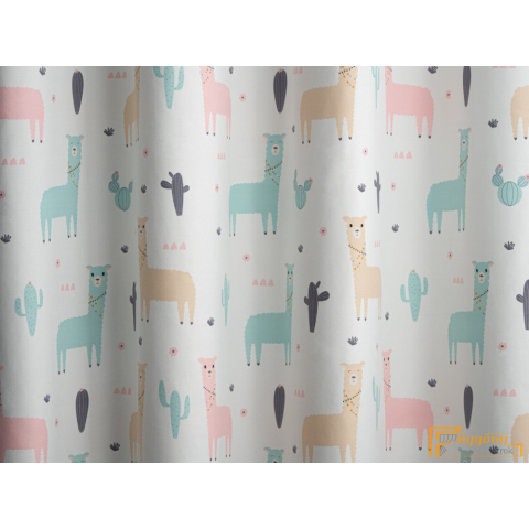1 kép (4 minta) Lama dekorációs függöny- rózsaszín,világoskék,ekrü állatos