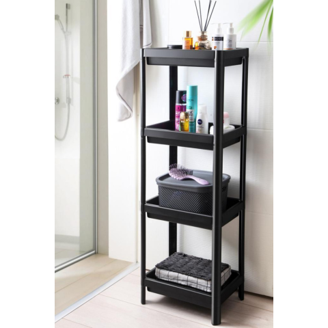 1 kép 4 polcos álló műanyag polc – fekete, 23x36x100 cm