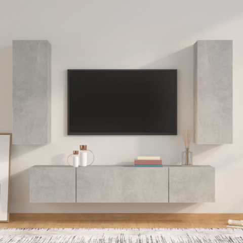 1 kép 4 részes betonszürke szerelt fa TV-szekrényszett