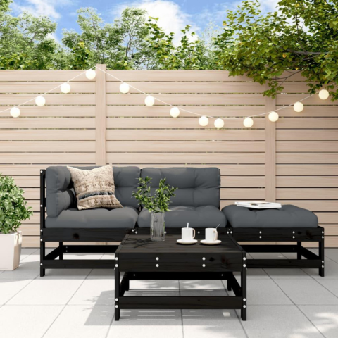 1 kép 4 részes fekete tömör fenyőfa kerti pihenőgarnitúra