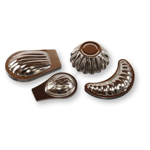 1 kép 4 részes hagyományos sütőforma készlet (dió, kosárka, kifli, kagyló)