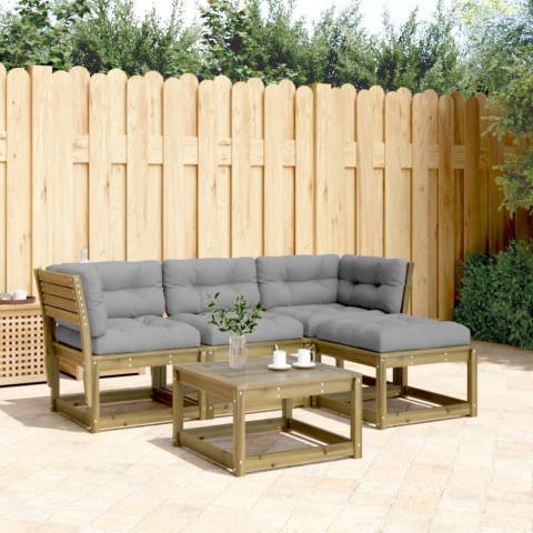 1 kép 4 részes impregnált fenyőfa kerti ülőgarnitúra párnával