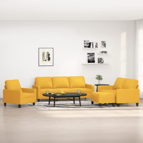 1 kép 4 részes világossárga szövet ülőgarnitúra párnákkal