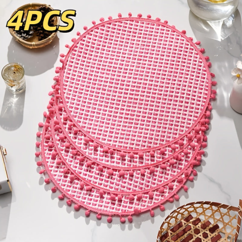 1 kép 4db Bohém Stílusú Fonott Asztalfutó Készlet Golyós Bojttal