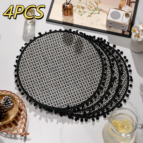 1 kép 4db Bohém Stílusú Fonott Asztalfutó Készlet Golyós Bojttal