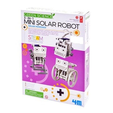 4M 3 az 1-ben napelemes robot készlet Vigyorgó robot, ami egyszerre sétál, gurul és mászik! A 4M 3 az 1-ben napelemes robot egy trükkös szerkezet, amit egyszerre három módon is használhatsz! A robot a napfény energiáját használja, tud sétálni, gyorsan