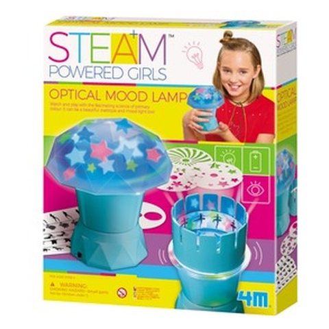 4M Hangulatlámpa készlet Alkoss nyugtató fényjátékot egy színes hangulatlámpával! A 4M Hangulatlámpa készlet egy gomba formájú, forgó lámpát tartalmaz, ami a plafonra vetít rengeteg színes mintát A lámpát először össze kell rakni alkatrészenként, után