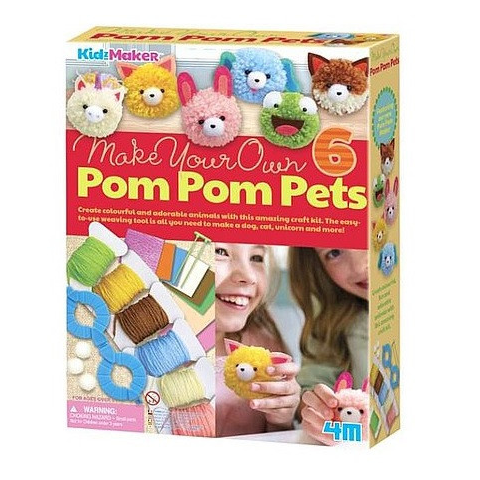 4M Pom pom állatkák Készíts aranyos pom pom figurákat! A 4M Pom pom állatkák készítő készlet műanyag keretének segítségével percek alatt bolyhos kis arcokat tudsz készíteni A 4M Pom pom állatkák keretre tekerd rá a különböző színű fonalakat, majd egy