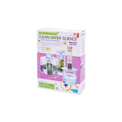 Hogyan lehet megtisztítani a csapvizet? A 4M víztisztító tudományos készlet megmutatja! Az asztalodra téve figyelheted meg, ahogy a csapvíz, vagy bármilyen koszos víz megtisztul a készlettel. A poharakat egymásra kell tenni és fel kell tölteni őket a többféle tisztító réteggel. A kísérletezés lényege, hogy megtanulhatod, a kavicsok, a homok, a napfény (UV-fény) és az aktív szén miként tisztítja meg a vizet, vagy azt, miért jó a növényeket tisztított vízzel lo