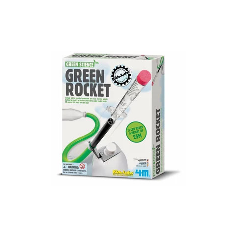 Készíts egy környezetvédő rakétát, amit a újrahasznosított energiával tudsz reptetni! Ahhoz, hogy a 4M zöld rakéta készlettel tudj játszani, először is szükséged lesz kettő, egyenként legalább 1,25 literes műanyag flakonra, és némi régi újságpapírra. Az egyik flakon lesz a zöld rakéta kilövőállása, a másikkal szolgáltatod a hajtóerőt! Tekerj össze néhány újságlapot egy hengerré, tegyél rá kupakot, díszítsd matricákkal és szárnyakkal, és már k