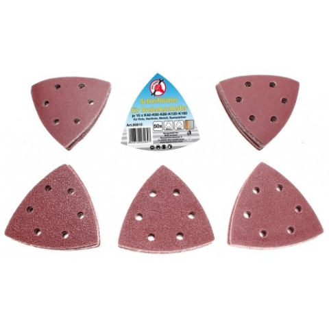 Használható fém, puha és kemény fa, illetve egyéb felületeken;Tépőzáras hátlap;95x95 mm-es méret.A következő szemcseméretű csiszolópapírokból tartalmaz tíz-tíz darabot:40 - 60 - 80 - 120 - 180