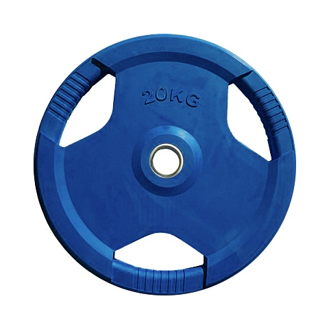 Szögletes peremű 20 kg-os, 51 mm-es belső furatú gumírozott súlytárcsa kék színben. Megmarkolható furatokkal ellátott súlytárcsa, mely biztonságosan cserélhető és kompatibilis bármelyik típusú 50 mm-es súlyzórúddal.