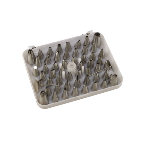 Engedd szabadjára a kreativitásod és hozd létre lenyűgöző sütiket és tortákat ezzel a 55 részes díszítőcső készlettel! Ha komolyan érdekel a sütés és tortadíszítés, akkor ez a készlet minden igényedet kielégíti. A készletben található 53 különböző mintájú és méretű díszítőcső lehetővé teszi, hogy bármilyen alkalmi süteményt vagy tortát varázsolj. Legyen szó csillagokról, virágokról, levelekről vagy akár sima vonalakról, ebben a készletben