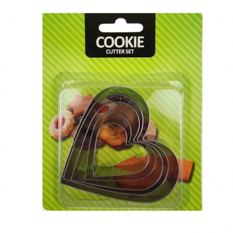 5 darabos, különböző méretű kiszúró szett szív mintával. Tulajdonságok: Anyaga: fém Mérete: - 40 mm - 50 mm - 62 mm - 70 mm - 82 mm A süteménykiszúrók vastagsága: 15 mm