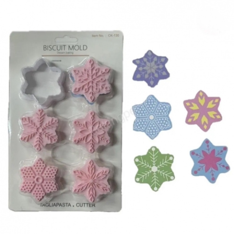 5 darab a képen látható süteménykiszúró és mintázó.Tulajdonságok:Anyaga: műanyagA kiszúró mérete: 5,5 cm A kiszúró vastagsága: 2 cmA süteménykiszúró és a mintázó használata:- A kiszúró segítségével kivágjuk, kiszaggatjuk a kívánt mintákat, majd a mintázó segítségével elkészítjük a pontos mintát.- Ezután kisütjük a süteményeket.- Majd a nyomóforma által hagyott mélyedésekbe cukormázat, csokikrémet töltünk és hagyjuk megszáradni.