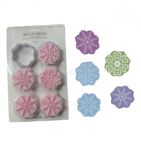 5 darab a képen látható süteménykiszúró és mintázó.Tulajdonságok:Anyaga: műanyagA kiszúró mérete: 5,5 cm A kiszúró vastagsága: 2 cmA süteménykiszúró és a mintázó használata:- A kiszúró segítségével kivágjuk, kiszaggatjuk a kívánt mintákat, majd a mintázó segítségével elkészítjük a pontos mintát.- Ezután kisütjük a süteményeket.- Majd a nyomóforma által hagyott mélyedésekbe cukormázat, csokikrémet töltünk és hagyjuk megszáradni.