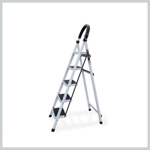5 fokos háztartási létra, fehér SLH1367- 5 fokos. - Anyag: szénacél. - Maximális terhelhetőség: 150 kg; - súly: 5,5 kg; - csúszásmentes bordázott felület. - Összecsukható, hogy könnyen tárolható és szállítható legyen