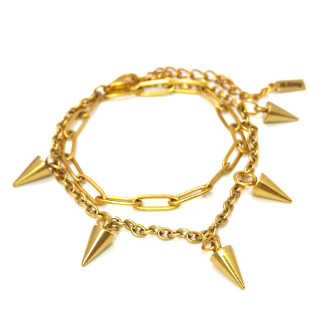 1 kép 5 kúp szegecs charmos rozsdamentes acél dupla karkötő, arany színű