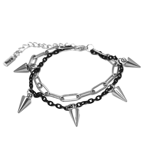 1 kép 5 kúp szegecs charmos rozsdamentes acél dupla karkötő, ezüst-fekete színű