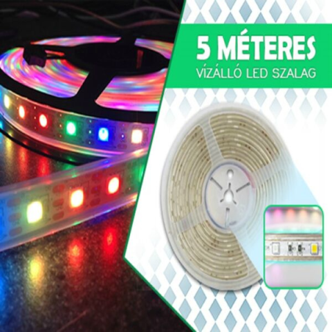 5 méteres led szalagunk szilikongumi beovnata miatt vízálló, így kültéren ugyan úgy használható mint beltéren. Összetekercselt formában kapható. A led szalag színes, kb 8 féle szín és mozgásanimációval rendelkezik ami a hozzá tartozó vezérlő segítségével állítható. Használható karácsonyi dísznek, hangulatvilágításnak, valamint kisebb szekrények, helységek bevilágítására.