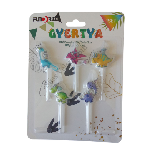 Tökéletes választás születésnapi tortákra, különleges alkalmakra. Mókás dinoszaurusz formájú gyertyák, amik minden gyerek szívét elvarázsolják. Ideális választás fiúk és lányok számára egyaránt, akik imádják a dinókat
