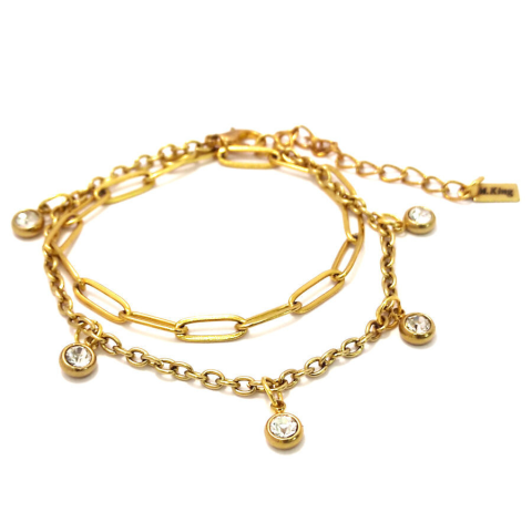 1 kép 5 Színtelen kristályos charmos rozsdamentes acél dupla karkötő, arany színű