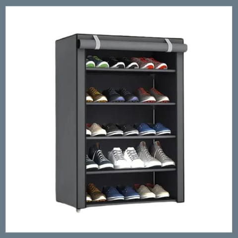 5 szintes cipőtároló polc – lehajtható takaróval, szürke JY638049 bútor termékleírás