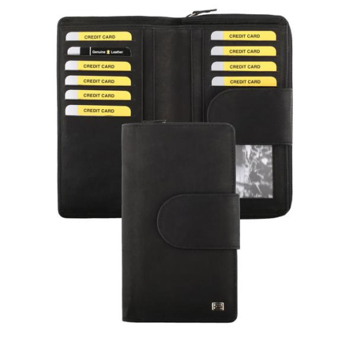 Méret: 17 x 10 x 2 cm Papírpénz tartó: 1 db Aprópénz tartó elválasztóval: 1 db Kártyatartó: 10 db Fényképtartó: 1 db Nyitott zseb: 4 db Cipzáras zseb: 1 db Patentzár