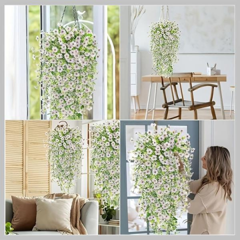 6 db Bohém Stílusú UV-álló Művirág csokor JV753763Ez a 6 darabos bohém stílusú művirág készlet fehér virágokkal és zöld lombozattal ideális választás kültéri és beltéri dekorációhoz, valamint különleges eseményekhez, mint esküvők, partik, Valentin-nap, Anyák napja és ballagási ajándékok. Az UV-álló anyagnak köszönhetően a virágok hosszú távon megőrzik friss megjelenésüket, és ellenállnak a napsütésnek, így bármilyen környezetben ideálisan al