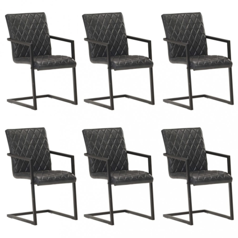 Teljes 6 db fekete valódi bőr szánkótalpas étkezőszék termékleírás