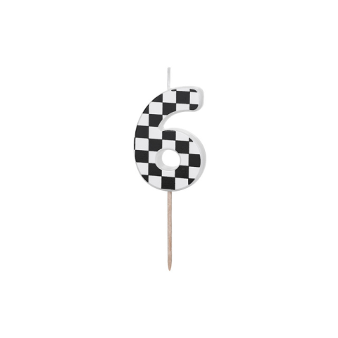 6-os számú születésnapi gyertya kockás zászló mintával, mérete kb. 5,5 cm, keverjük össze