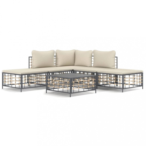 Teljes 6-részes antracitszürke polyrattan kerti ülőgarnitúra párnákkal termékleírás