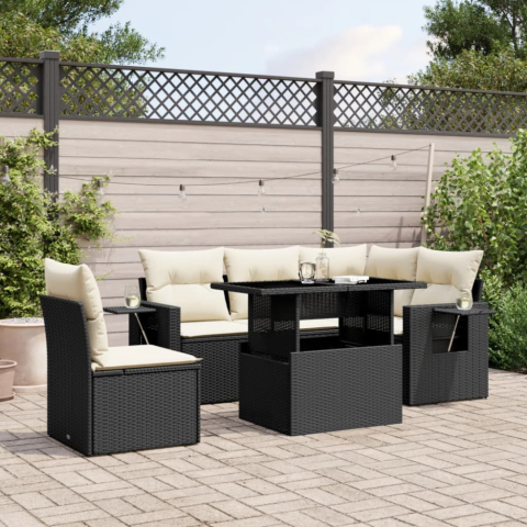 6 részes fekete polyrattan kerti ülőgarnitúra párnákkal kerti bútor termékleírás