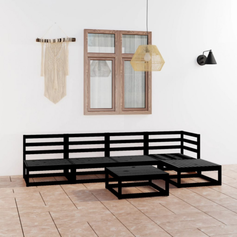 6 részes fekete tömör fenyőfa kerti ülőgarnitúra kerti bútor termékleírás