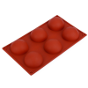 6 részes szilikon forma, félgömb mintával. Tulajdonságok: Anyaga: szilikon (-40°C - +210°C között használható) A szilikon forma méretei: - A teljes forma mérete: 167 mm × 280 mm - A formák mélysége: 35 mm. - A félgömb mérete: Ø 67 mm A szilikonforma