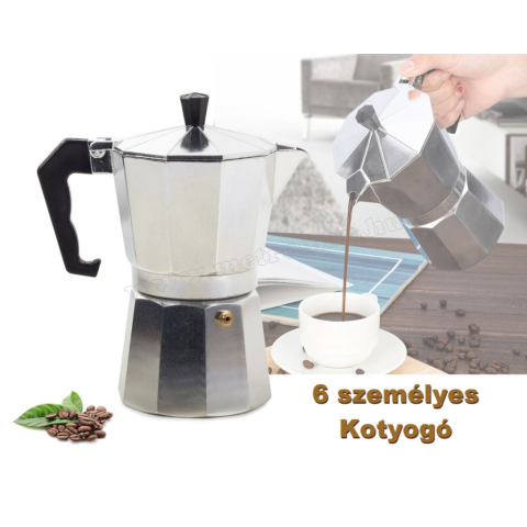 Ébredjen minden reggel az igazi olasz kávéházak hangulatára 6 csészés kotyogós kávéfőzőnk segítségével! Ez a minőségi alumínium kávéfőző a kotyogó kávéfőzők klasszikus dizájnját hozza, így biztosítva a tökéletes eszpresszó élményt otthonában. Gyors és egy