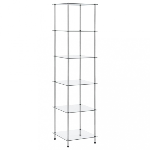 Teljes 6 szintes átlátszó edzett üveg polc 40 x 40 x 160 cm termékleírás