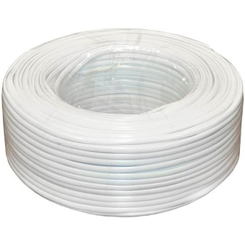 100 méter 6 eres biztonságtechnikai kábel riasztórendszerekhez A kábel tulajdonságai 6 eres biztonságtechnikai kábel Rézzel bevont alumínium, sodrott, belső erek (CCA) Belső erek: 0.22mm2 HDPE érszigetelés Fehér színű PVC köpeny Alufólia árnyékolás Külső átmérő: 4.5 mm 100 m / tekercs kiszerelés, fóliázva