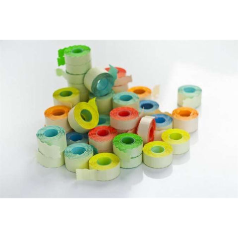 Árazószalag, 25x16 mm, A, fehér 900 címke/tekercs stancolt (körmös) sárgás színű hordozó változó színű cséve Kompatibilis gép: Blitz S14, Blitz S16, Swing 1426, Jolly JS14, Stao Judo 26, Open S14, Meto1426, Start 16, Tovel 8+10, Printex Z17
