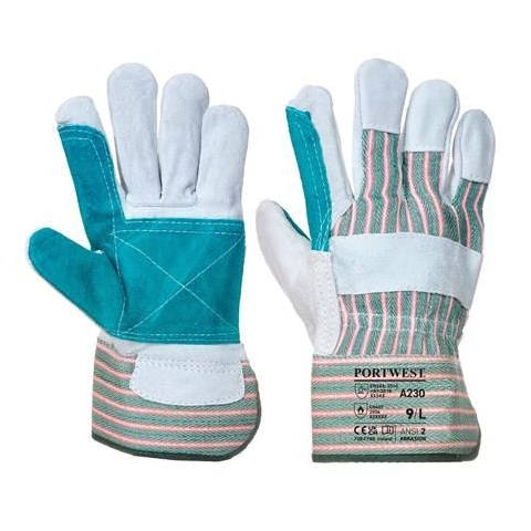 Erős és strapabíró marhahasíték bőrkesztyű. Kiváló minőségű, dupla tenyérrel megerősített munkavédelmi kesztyű, az építőipar, a mezőgazdaság és az erdészet számára. Megerősített tenyér-, hüvelyk- és mutatóujj. Csukló- ujjperc- és ökölcsont védelemmel.