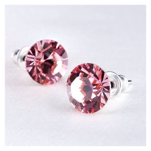 Divatos, eredeti Swarovski® kristállyal készült fülbevaló. Kiváló ajándék kedvező árfekvésben. A fém alkatrészek allergénmentes, orvosi acélból készültek. Kristály színe: rózsaszín. Kristály átmérője: 8 mm. Csomagolás: díszdobozban.