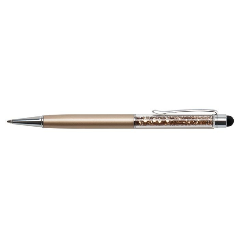 Elegáns kivitelű, kiváló minőségű, eredeti Swarovski® kristályokkal töltött golyóstoll. A tolltest fém, logózható, lézergravírozható. A toll végén található érintővel könnyedén kezelheti okoseszközeit. Elegáns ajándék magánszemélyek és cégek részére. Tolltest színe: arany. Kristály színe: topáz. Betét színe: kék. Vonalvastagság: 0,7mm. Csomagolás: elegáns díszdobozban.